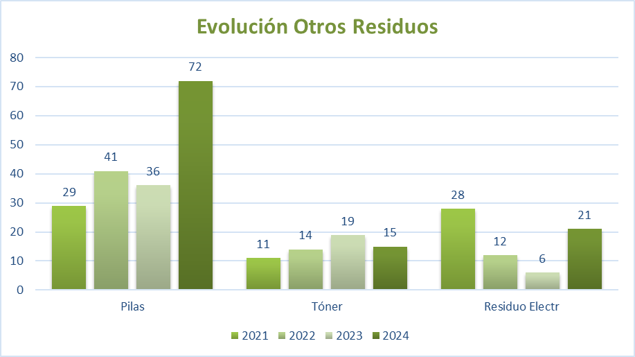 En este apartado se incluyen otro tipo de residuos: Pilas, Cartuchos y Tóner, y también los residuos electróncios que generamos de nuestra activdiad.